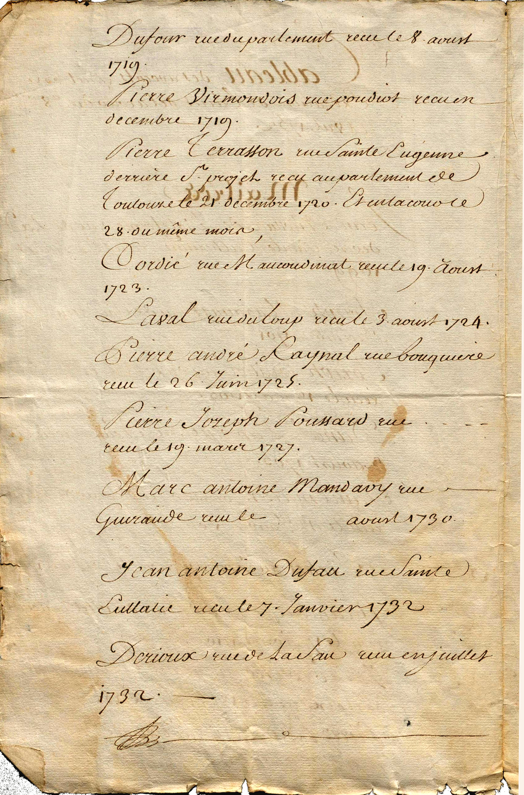 Des avocats au parlement figureront sur le Tableau de l’Ordre jusqu’aux débuts du Second Empire, après 1850. Le plus ancien a prêté serment sous le règne de Louis XV, le dernier, Dupac, sera éliminé du tableau le 20 janvier 1853. Il avait prêté serment, au Palais de l’Ombrière, en 1779, en même temps que Gensonné.