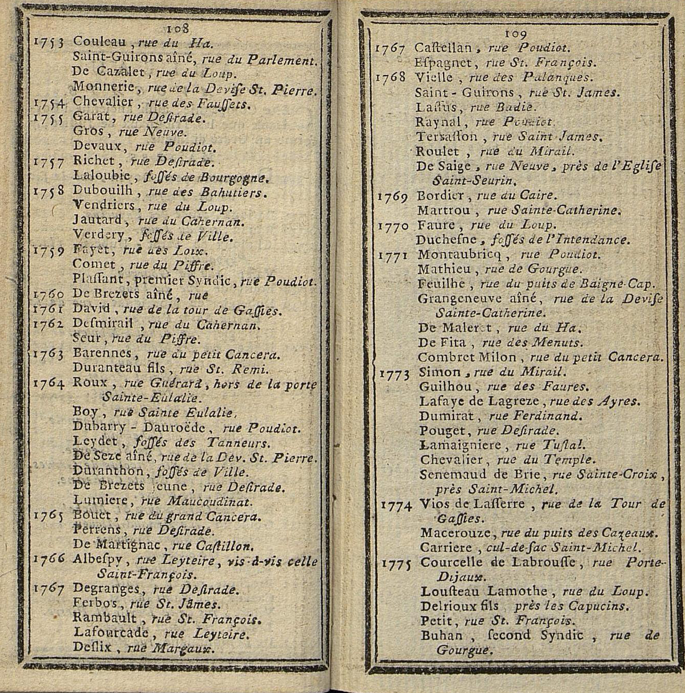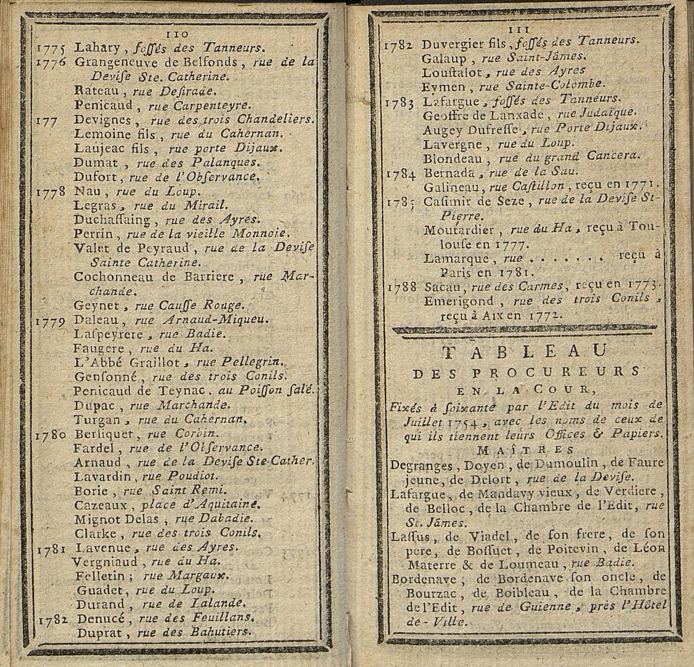 porte les noms de 160 avocats avec notamment Garat (inscrit en 1755), Duranthon (1764), Grangeneuve (1771), Gensonné (1779), Guadet et Vergniaud (1781).